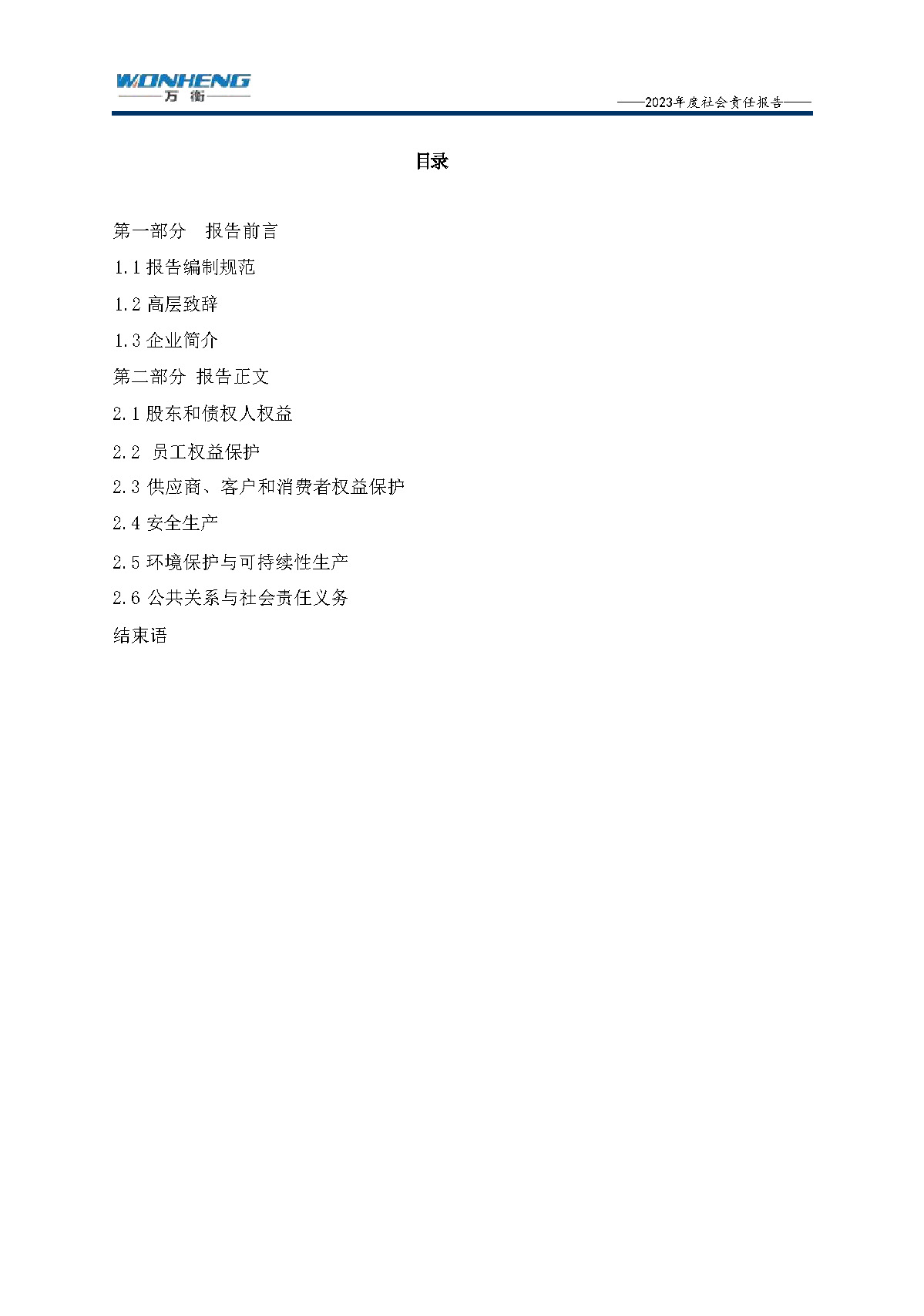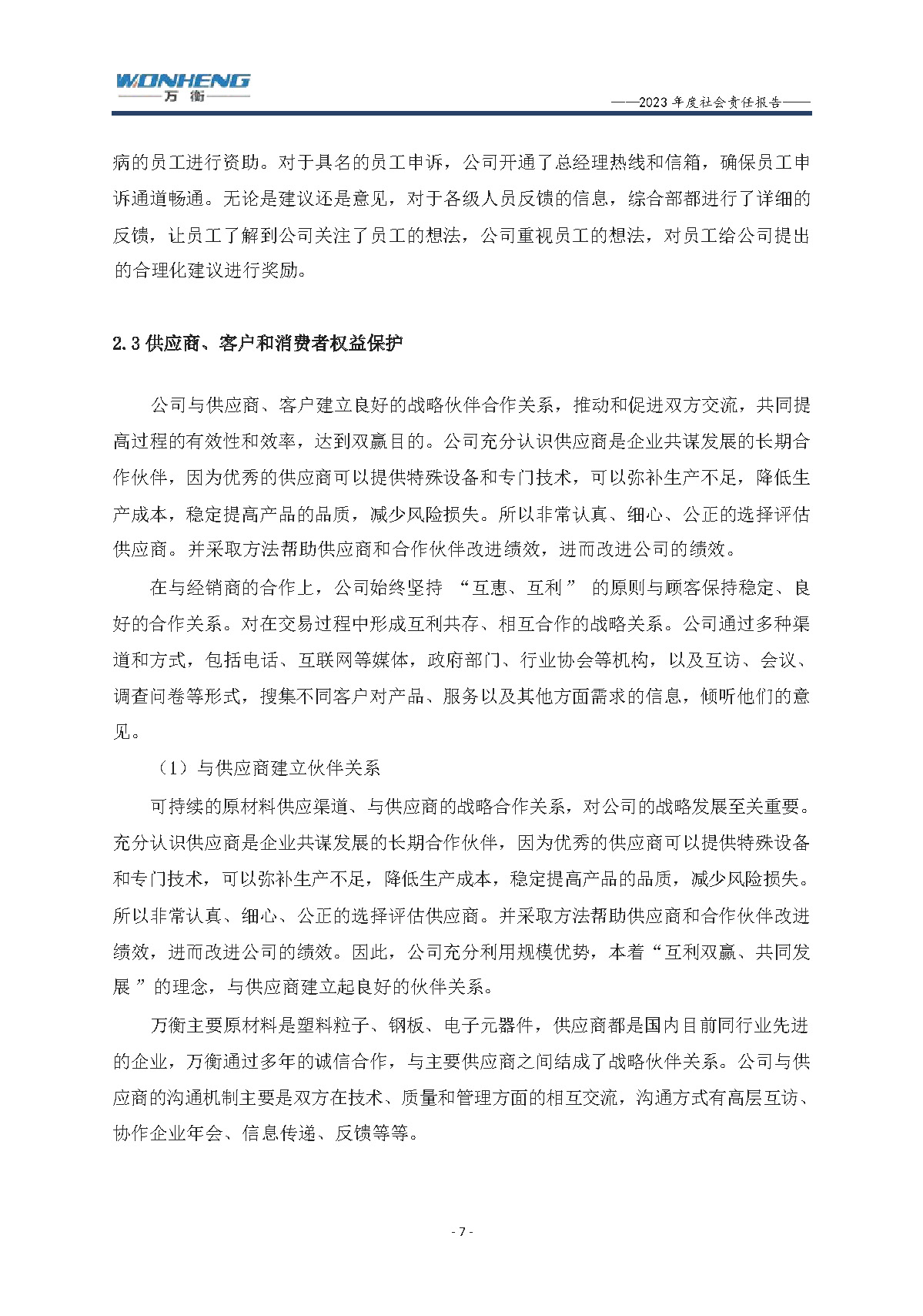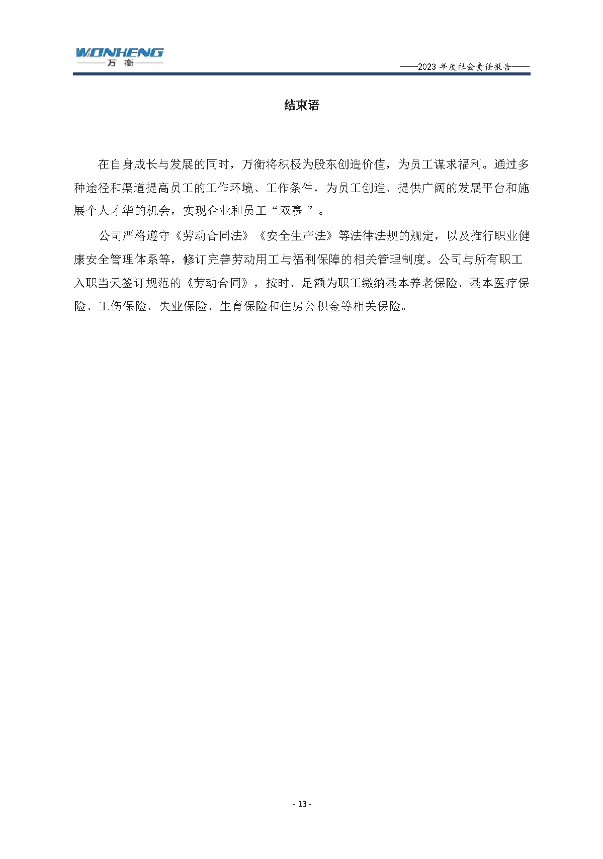 浙江萬衡工貿有限公司2023年度社會責任報告