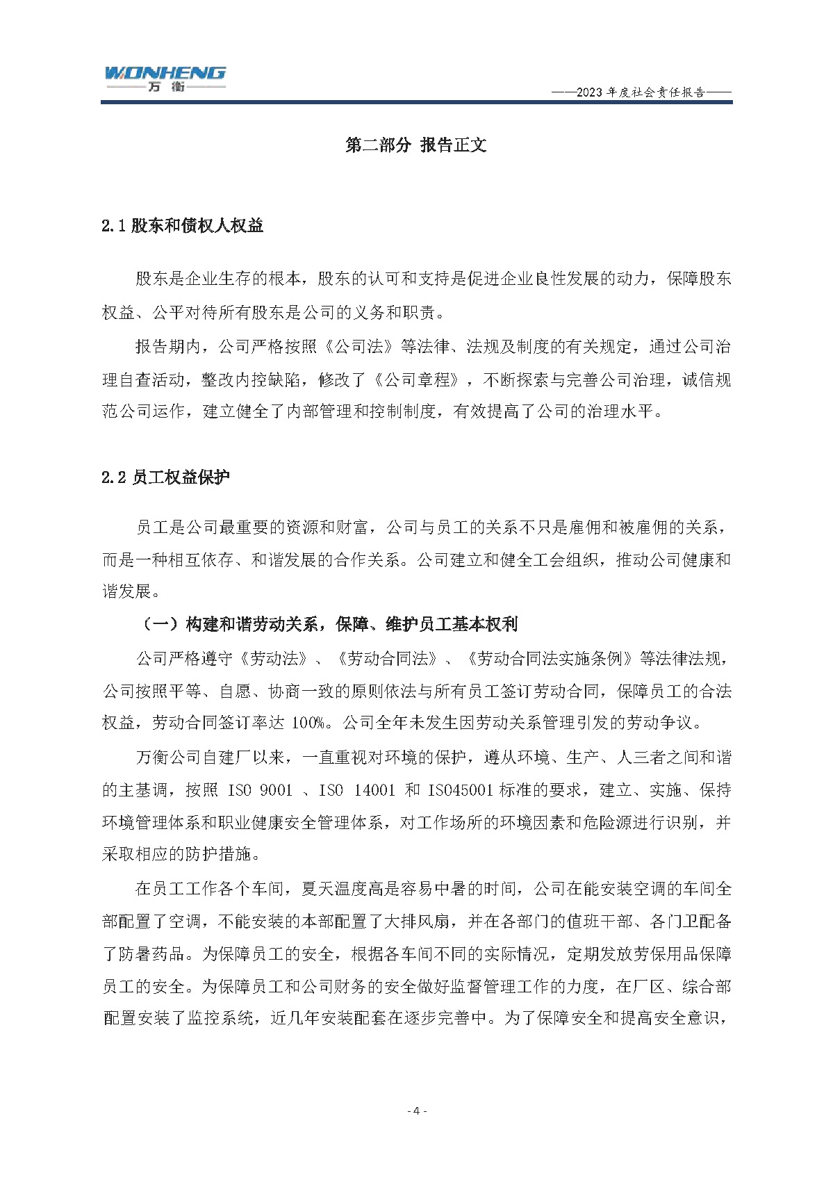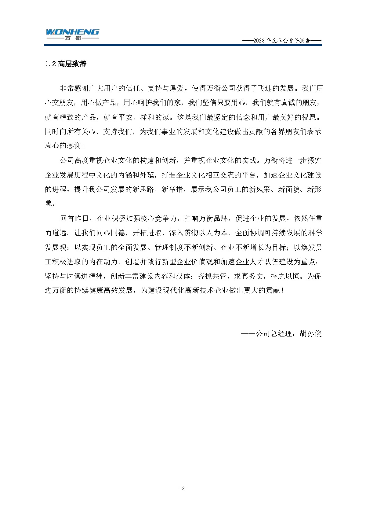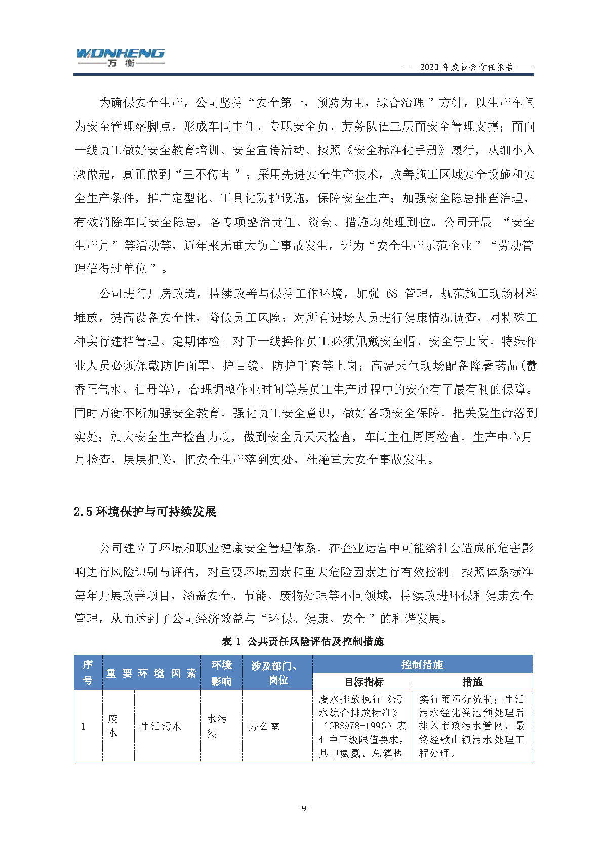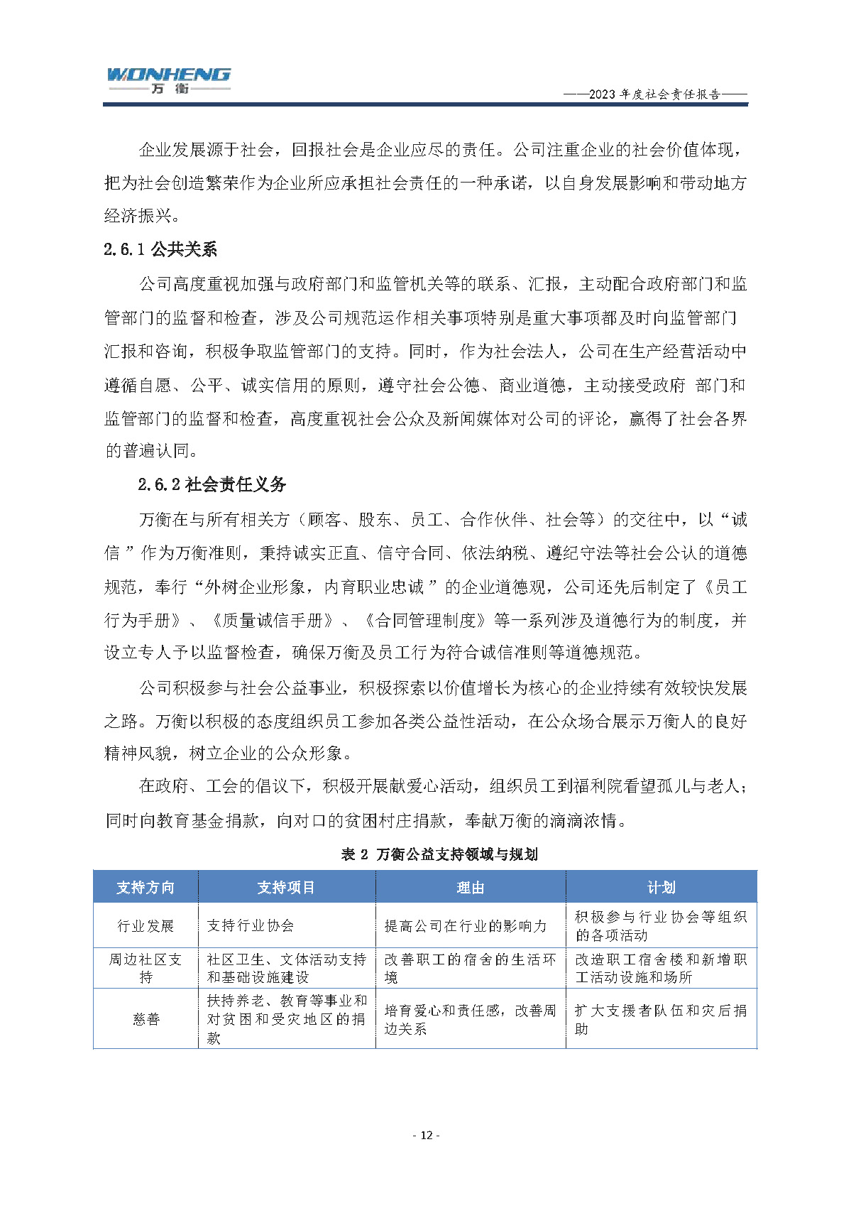 浙江萬衡工貿有限公司2023年度社會責任報告